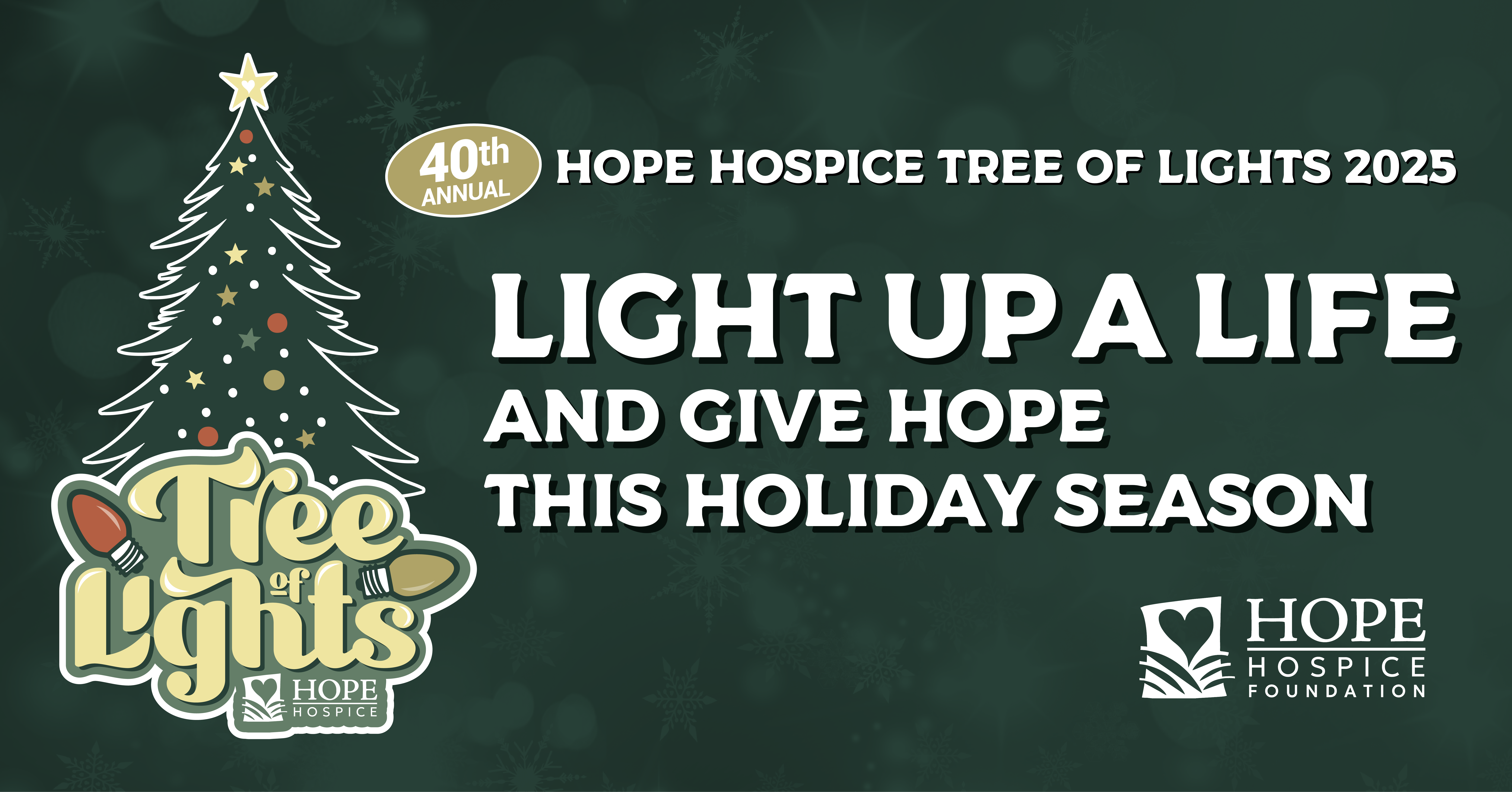 This holiday season, shine a light for your loved one and help keep their memory alive through our Light Up a Life campaign. Your gift to Hope Hospice’s Tree of Lights ensures that compassionate care and grief support continue for families in need.